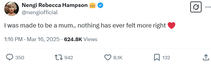 Former Big Brother Naija (BBNaija) housemate Nengi Hampson has finally spoken out following the birth of her first child, sharing her joy and fulfillment as a new mother.