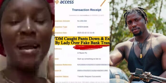 A Nigerian lady has caused a stir online after accusing controversial social media critic, Verydarkman, of making a fake bank transfer.