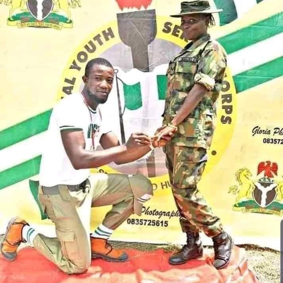 Inside Ebonyi state National Youth Service Corp, NYSC camp, a corp member is understood to have proposed to a female soldier.