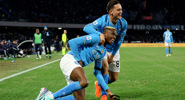 Osimhen opened the scoring in the 69th minute when he powered a header through the hands of Cagliari’s despairing goalkeeper Simone Scuffet.