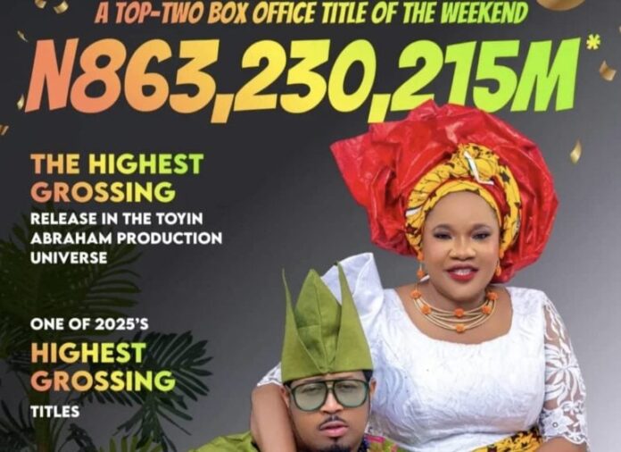 World best steady delivering back to back oversabi box office numbers. I mean how else do you describe oversabi if it does not deliver? Oversabi Aunty is now the highest-grossing film in Toyin Abraham Production, grossing N850m and counting, the post reads.