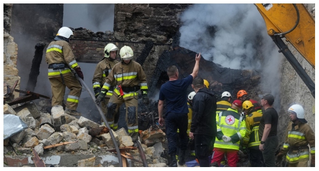 At least 20 people were wounded following strikes on Odesa and the southern port city of Mykolaiv, local officials said, posting images showing buildings in flames with facades partially destroyed.