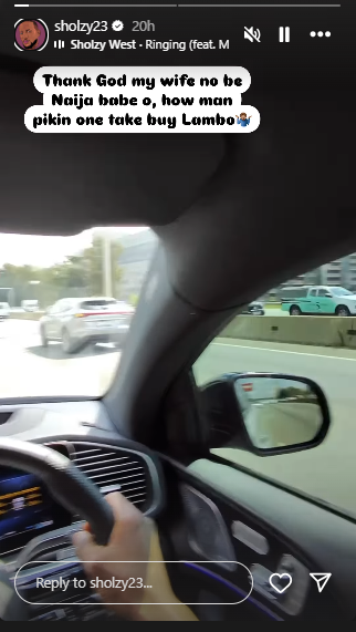 “Thank God my wife no be Naija babe o. How man pikin one take buy Lambo?” he wrote.